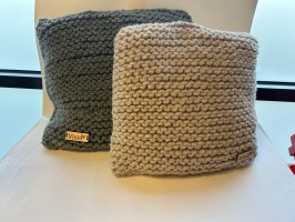 Set van twee gebreide kussens met vulling.