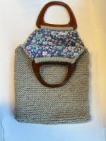 Gebreide tas met bloemetjes stof aan de binnenkant.