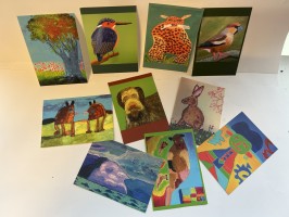 De zelfgetekende kaarten worden verkocht in setjes van 10 stuks. De kaarten zijn 15x10 cm