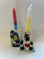 Kleurrijke kaarsenstandaard van houten blokjes. Bij de bestelling krijgt u een gedompelde kaars cadeau.&nbs...