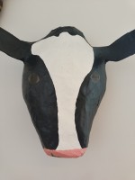 Een unieke handgemaakte koeienkop van papier maché - een echte eyecatcher