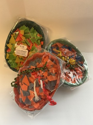 Ovalen buitenkaarsen in diverse kleuren. De kaarsvet stukjes zitten door elkaar in allerlei kleuren.