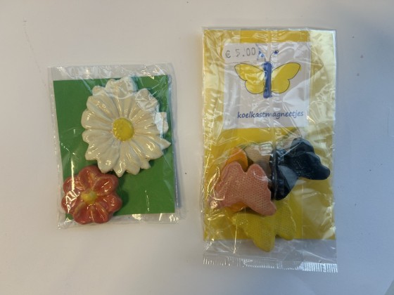We verkopen de magneten in diverse sets. De vlinders zijn verpakt per 5 en de bloemen zijn een set van 3.