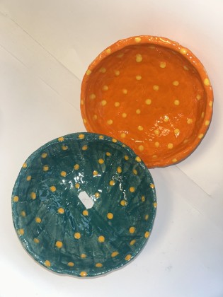 Een vrolijke set van 2 stippen schalen.