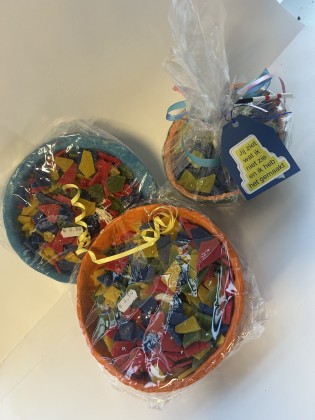 Ronde buitenkaarsen in diverse kleuren. De kaarsvet stukjes zitten door elkaar in allerlei kleuren.