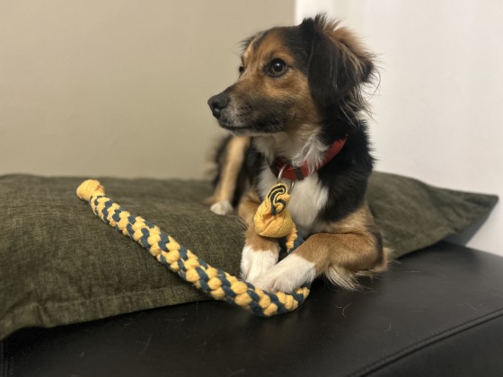 Een kleurrijk speeltje voor de hond. Het materiaal is stevig en iets elastisch.