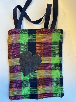 Vrolijk, geweven boodschappen tasje. Twee varianten.