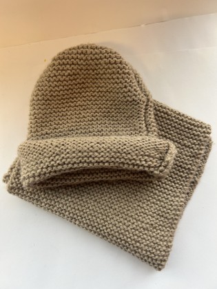 Gebreide Sjaal, muts setjes. We verkopen de Sjaal/muts niet apart.