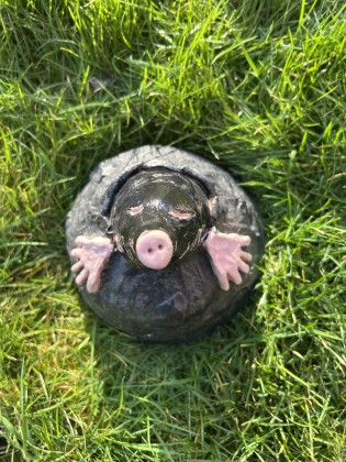 Keramieken mollen voor in de tuin. Leuk als cadeau of aankleding voor u eigen tuin.